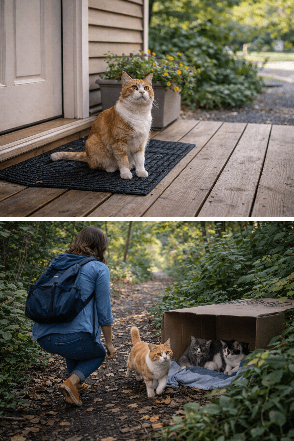 One quiet morning, a woman noticed a stray cat sitting on her porch. The cat returned the next day, and the day after that. Eventually curiosity took over, and she decided to follow the animal. What the cat led her to completely changed her understanding of the situation.