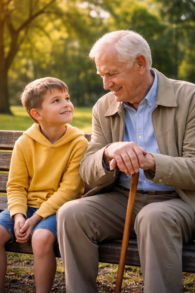 One quiet afternoon in the park, an elderly man sat alone on a wooden bench.